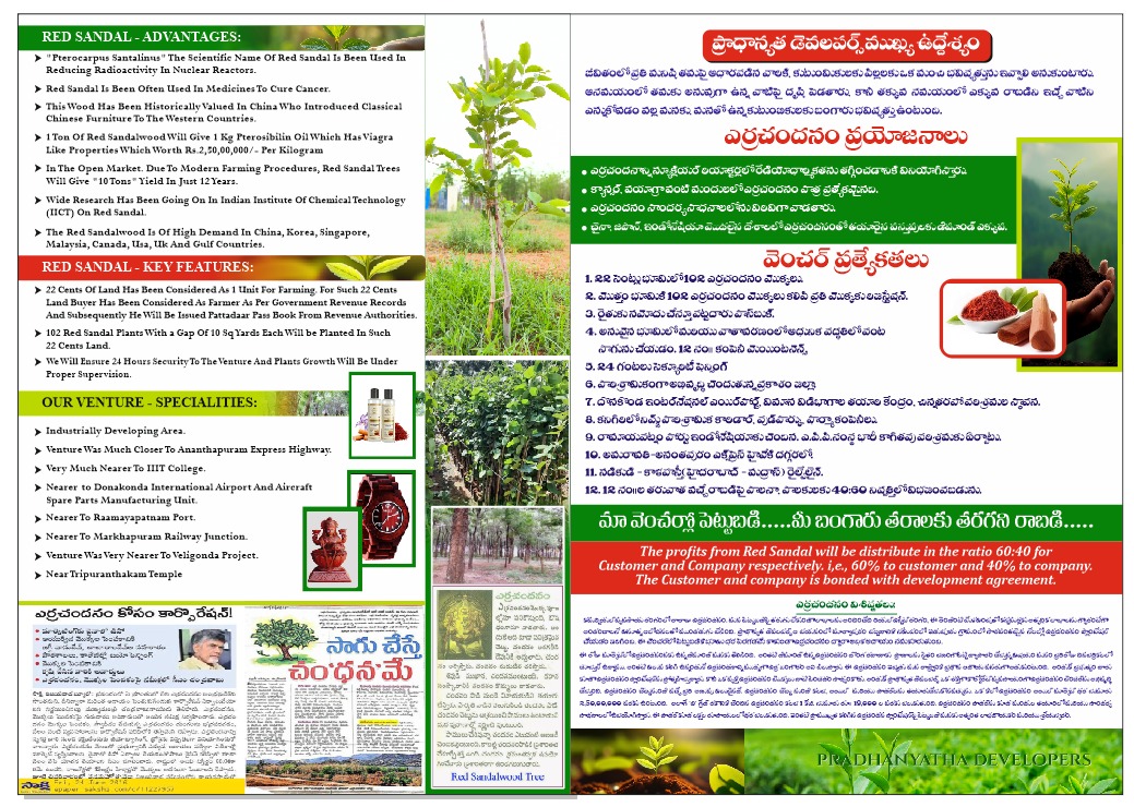 At Pradhanyatha Venture Developers, we have expanded our horizons into the red sandal business, recognizing the value of this rare and precious resource. With our vast experience in the real estate development industry, we have leveraged our expertise to establish a sustainable and ethical red sandalwood business. Our mission is to source and provide the highest quality red sandalwood products while ensuring the preservation of this endangered species. We are committed to promoting responsible harvesting and cultivation practices to ensure that future generations can continue to benefit from this valuable resource.